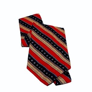 XMI Italian Silk Tie Woven Hand Tip Tac & String 56.5"X4" Red Blue Gold VTG USA