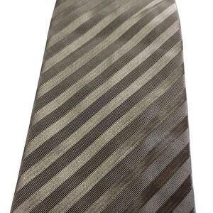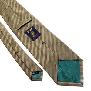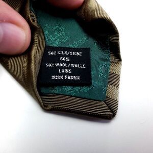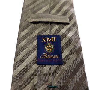 XMI Atkinsons Woven Striped Green Beige Short Wide Silk Wool Tie