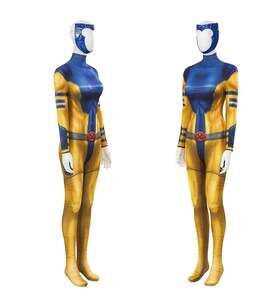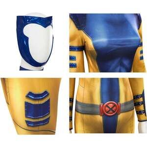 Channel your inner Phoenix with this vibrant X-Men Jean Grey Phoenix Cosplay/Halloween Jumpsuit. This full-body suit features the iconic yellow and blue design with detailed accents and an X-Men belt buckle graphic. Made from a comfortable, stretchy material, it's perfect for Halloween, comic conventions, or themed parties. The suit comes complete with a matching blue mask to complete your superhero transformation. Excellent pre-owned condition. Size Medium.