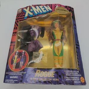 X-Men Rogue 12 inch collector hero doll in yellow and green outfit. Special edition packaging.
