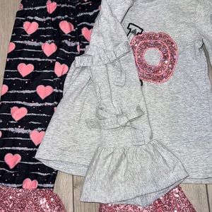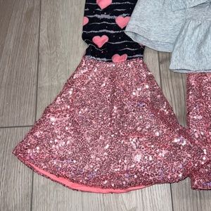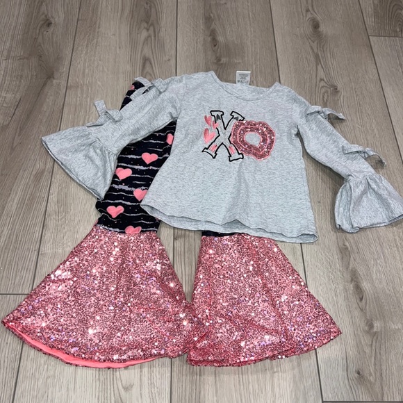 This is a boutique outfit so the tag says L but it’s roughly a 4T/5T size. My daughter wore it once for Valentine’s Day.