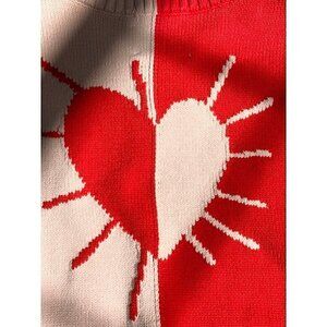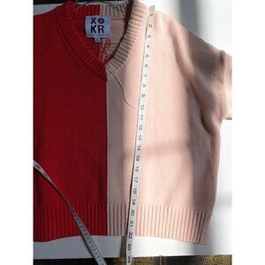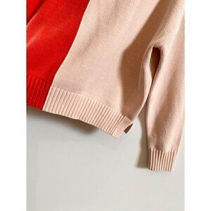 XO Kerri Rosenthal Heart Color Block V-Neck Sweater Sz M Radiant red pink blush