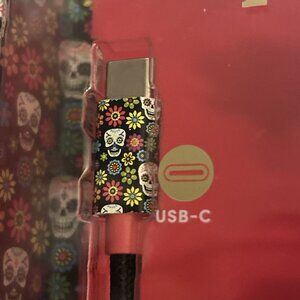 XO Poppy Fast Tri-Charging USB-C Micro USB 10 FT Cable Skull Day Of The Dead