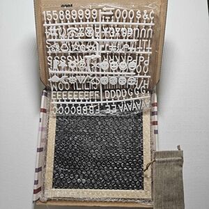 Includes: 189 letters, numbers and symbols, message board with pine frame, felt center, storage bag for letter kit, metal wall mount, hanger preattached.
