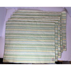 XOCHI Striped Lt Green Yellow White 14 x 17 Woven Cotton Placemats Summer Set 6.
