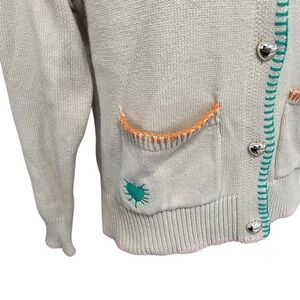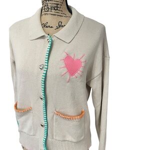 XOKR Kerri Rosenthal Cardigan Sweater Heart Smiles Embroidered Beige Size Small