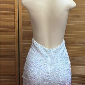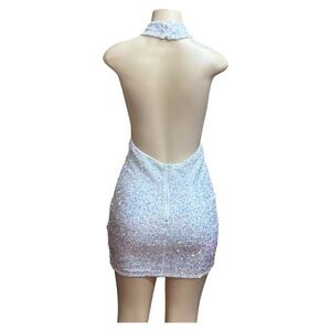 XOO KOOL . White Sequin Backless Mini Dress