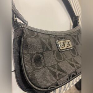 XOXO Black Shoulder Bag with Monogram Pattern