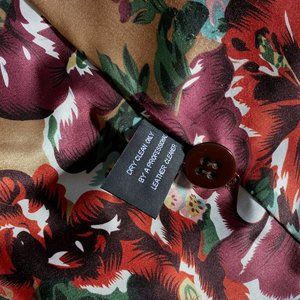 Rich cocoa brown suede coat from XOXO. Stylish trench coat details: big collar, pockets, decorative seaming, double-breasted, fitted shape, bright floral print lining. Soft chocolate brown suede is in good condition with no stains or flaws; overall very good preowned condition; folded edge of coat hem & sleeve hems show some wear; lining has been mended under left armpit. Size L. Measurements: shoulder to shoulder 17"; armpit to armpit 20 1/2"; shoulder to hem 27 1/2"; sleeve from top of shoulder 25".