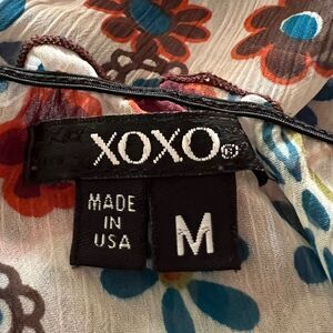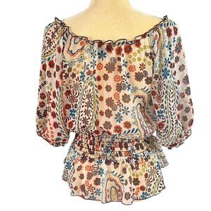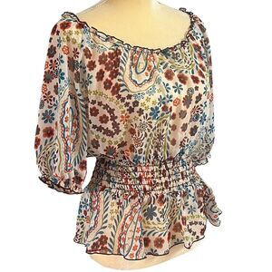 XOXO Floral Blouse Smocked Waist Sheer Top Boho Chic Made in USA Medium