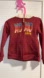 Makes a great sweatshirt for Valentine’s Day. Has a cute sparkly XOXO LOVE on the front. Maroon with blue, red , and orange sparkles on the front.
