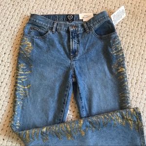 XOXO Gold Tiger Stripes NWT Blue Jeans! 6 Metallic