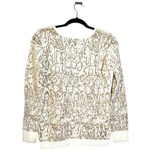 XOXO Gold White Crew Neck Holiday Sweater Medium