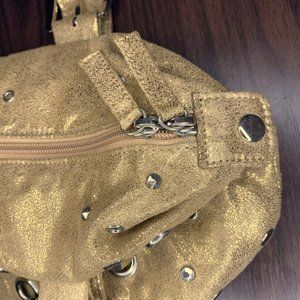 Exterior fabric and some of silver metal chips colors are a little faded.