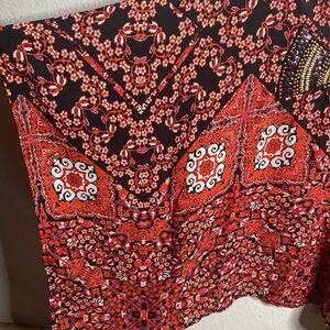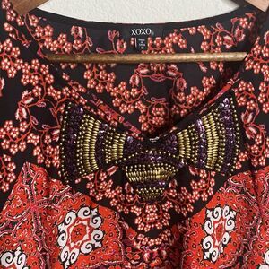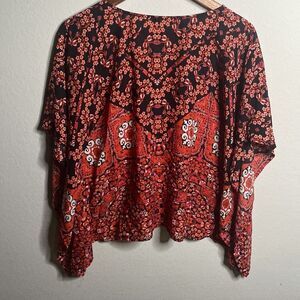 XOXO Junior’s Red Flowy Mixed Print Batwing Blouse Size Medium