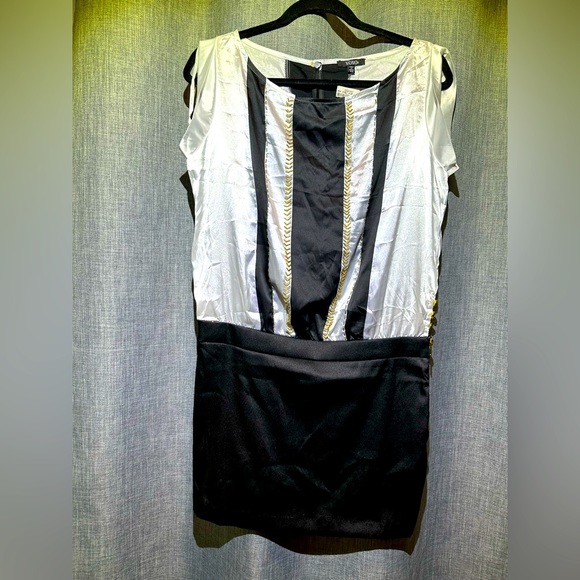 New Black and White mini dress with beautiful gold details Lightweight soft silky 🥰