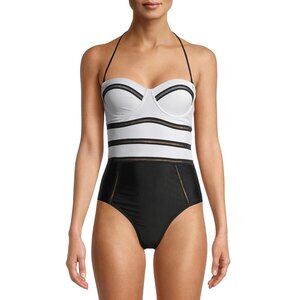 XOXO NWT Women's Monochrome One-Piece Swimsuit Padded Strappy Design Size Large
