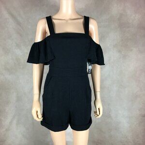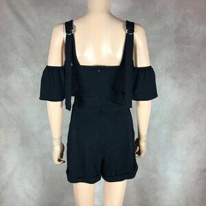 XOXO Buckle Straps Cold-Shoulder Textured Knit Romper