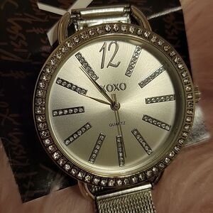 Gorgeous XOXO watch jeweled face. comes with warranty tag. Original Box is damaged missing extra item. Watch is in excellent NWT condition. Silver in color.