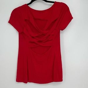XOXO RED SHORT SLEEVE CRISS-CROSS BACK TOP MEDIUM