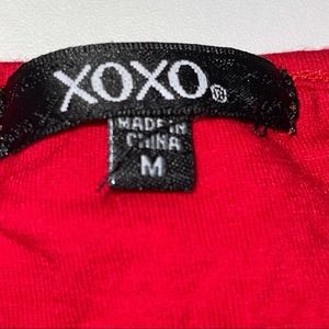 Elevate your style with this Medium Red Short Sleeve Pullover Top from XOXO. It's in excellent condition, free from rips, stains, or tears.