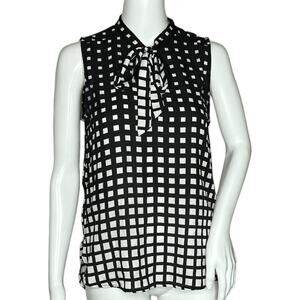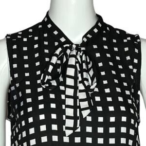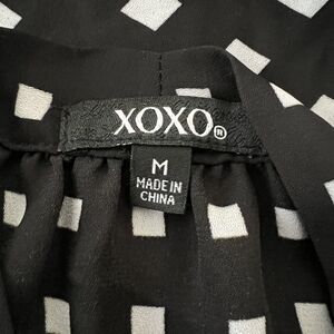 XOXO Shirt Womens Medium Black White Geometric Secretary Bow Minimalist Neutral