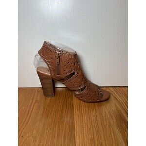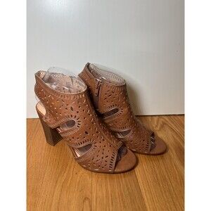 XOXO Shoes Womens Size 6.5M Brown Block Heel Cutout Booties Bloom Peep Toe Zip