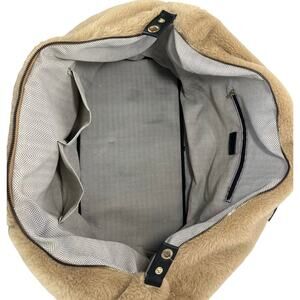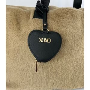 XOXO Soft Plush Faux Fur Carryall Tote Bag with Zipper charm and removable Duffle/crossbody strap. Has outside pocket with snap closure, three inside pockets one has zipper closure. Has side snaps for strap holder to snap in position when not using.