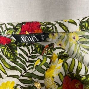XOXO Tropical Floral Off-Shoulder Blouse - Red, Yellow, Green