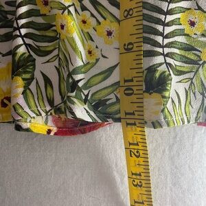 Tropical floral design with vibrant colors. Off-shoulder style. Perfect for a bold look.