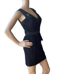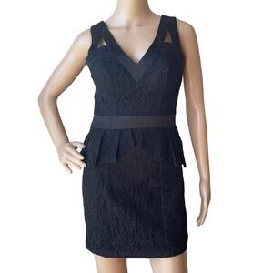 XOXO Women's Black Lace Wide Strap Peplum Cutout Mini Party Mini Dress Size 3/4