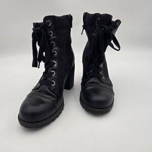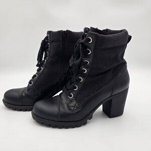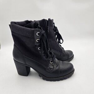 XOXO Womens Black Lace-Up Ankle Boots Size 6 PU/Textile