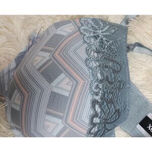 XOXO Womens Chevron Blue Lace Molded Cup Size 40D Push up Underwire Bra