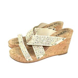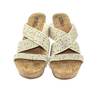 XOXO Women's Cream with stud bling detail cork wedge platform sandals size 10M