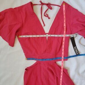XOXO Womens Dress Small Raspberry Cut Out High Low Maxi Chiffon Sheer Party Sexy