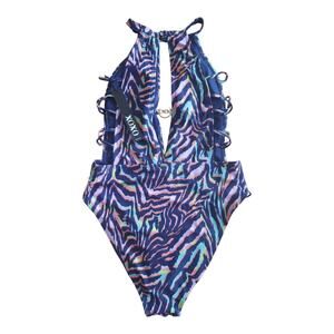 XOXO Womens High Neck Deep Plunge Multicolored Zebra Swimsuit Size Medium NWT