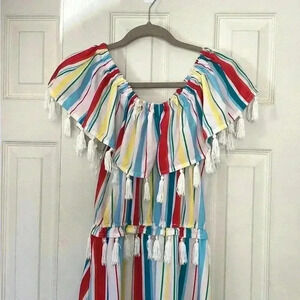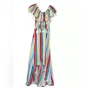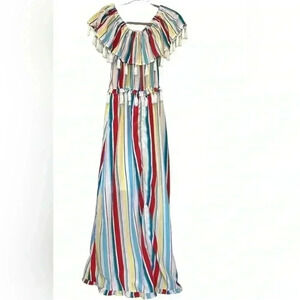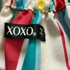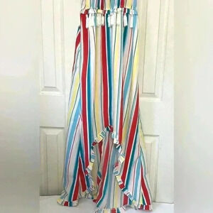 XOXO Women's Multicolor Polyester Round Neck Sleeveless Long Maxi Dress Size S patriotic Boho festival hi- lo dress