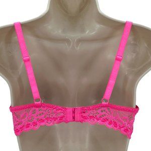 XOXO Womens Pink Heart Valentine Lace Padded Plunge Underwire Bra Sz 34C