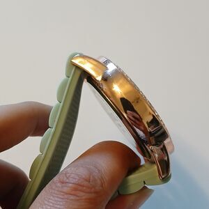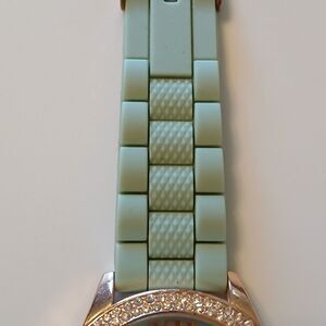 XOXO Women's Rhinestone Accented Rose Gold Watch With Green Silicone Strap