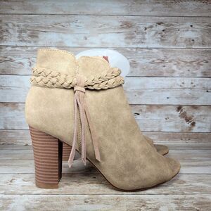 XOXO Womens Size 6M Briella Open Toe Tan Zip Up Ankle Boots XO163322