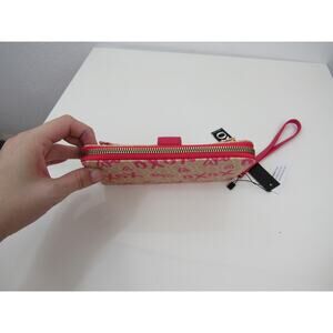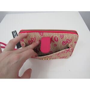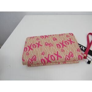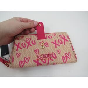 XOXO Women's Wristlet Wallet Clutch Zip Around Beige Magenta Pink Gold Logo NWT