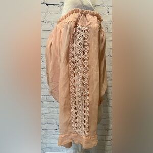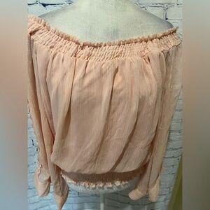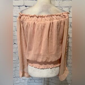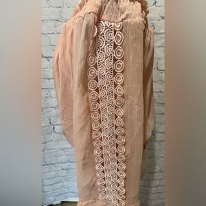 XOXO boho shirt Pink and gold long sleeve Off shoulder Sheer sleeves Size Large
