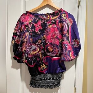 XOXO smocked polyester blend top - medium. 23” long, 25” wide. Like new! Smoke free home.