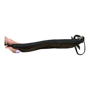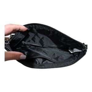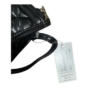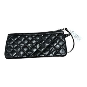The XOXO Black Quilted Clutch is a sophisticated accessory featuring a glossy quilted pattern and a sleek wrist strap for easy carrying. Its compact design and luxurious finish make it an ideal choice for evening events or special occasions.