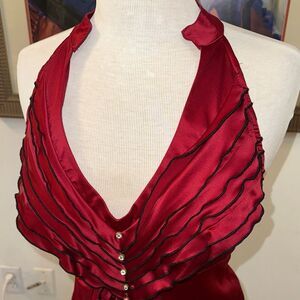 XOXO Red/Black Ruffle Halter Top w/ High Collar Size Large