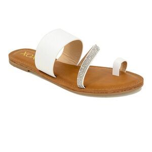 XOXO Romilia casual comfort sandal with jeweled strap and toe ring detail