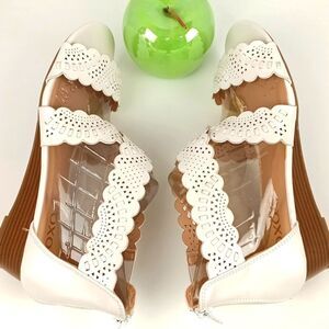 XOXO Women's "Amarissa" White Wedge Criss Cross Sandals sz 8.5 Boho Chic