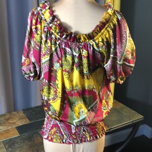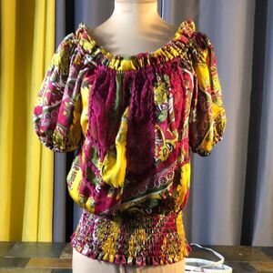 Poly/spandex Pit to pit flat 15.5” Pit to pit stretched 23” Length 24” Hem cinch 4.5” (18)