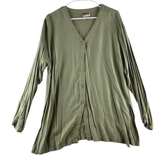 XPRSO Tunic Top Button Long Sleev Medium 100% Rayon Sage Green Cottage Lagenlook