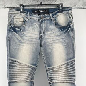 XRAY Jeans Men’s Blue Light Wash Moto Biker Slim Stretch Skinny Denim Jeans 34/30